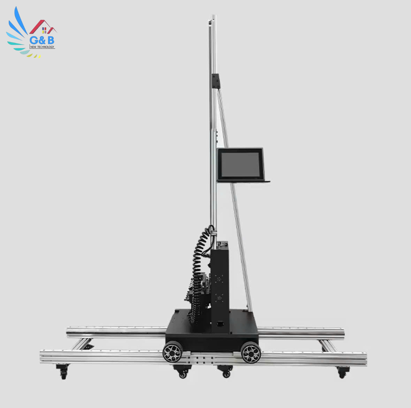 Kết quả là máy có thể tự điều chỉnh theo thời gian thực, đảm bảo khoảng cách phun luôn ổn định dù tường có độ gồ ghề hay lồi lõm nhỏ. Đây là tính năng then chốt giúp HK-W1 in được lên nhiều loại bề mặt khác nhau, không chỉ tường phẳng trơn.